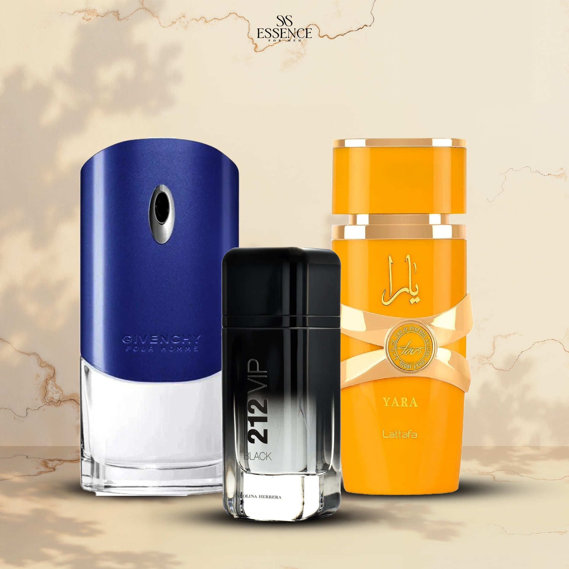 يارا الاصفر100مل + 212 بلاك 100مل + جيفنشي بلو 100مل